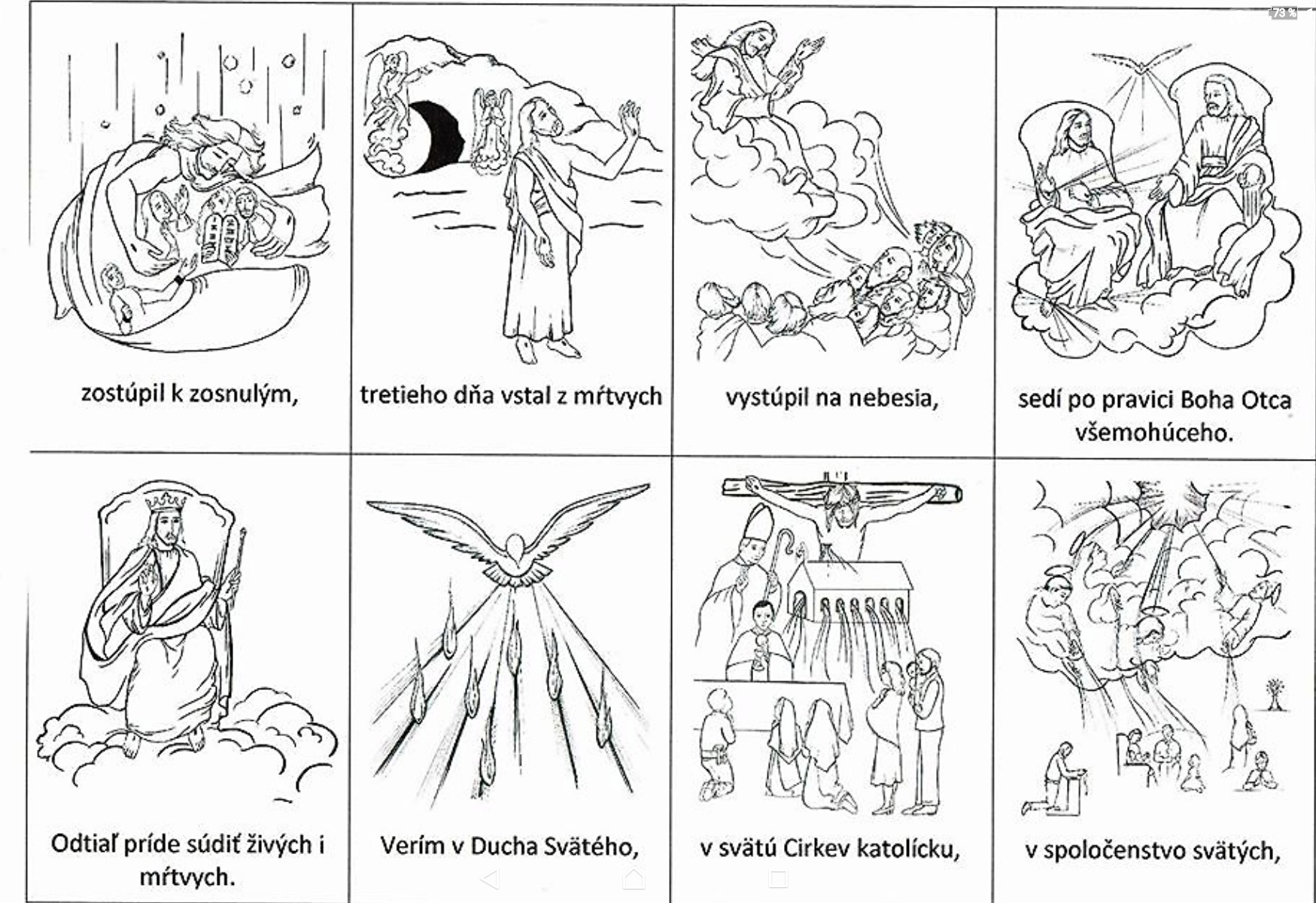 – základné modlitby (Otče náš, Zdravas Mária, Sláva Otcu, Verím v Boha, Modlitbu ľútosti…)